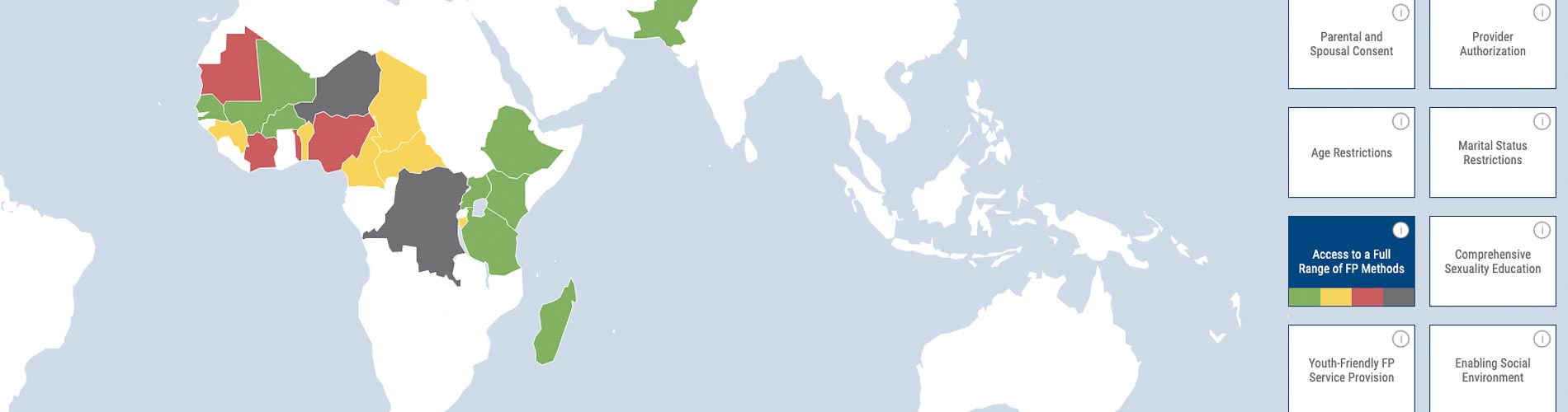 Youth Family Planning Policy ScorecardThrough EEDA, PRB monitored the policy environment for youth-friendly family planning services through our flagship Youth Family Planning Policy Scorecard, updated every six to 12 months. The Scorecard, available on a digital platform in English and French, analyzed the policy environment of 28 countries across eight indicators proven to increase youth access to and use of contraception.